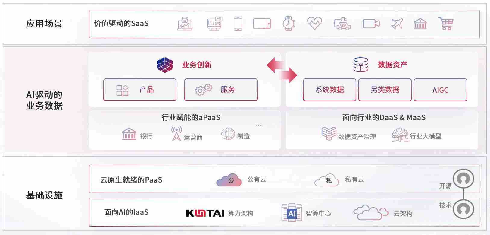 数字时代,,,,围绕企业数字化转型的关键要素,,,尊龙旗舰厅数码开创性的提出数云融合战略和技术体系框架,,,,着力在云原生、、、、数字原生、、、、AI原生和信创产业上架构产品和服务能力,,为处在不同数字化转型阶段的快消零售、、、、汽车、、、、金融、、、医疗、、、政企、、教育、、、运营商等行业客户提供泛在的敏捷IT能力和融合的数据驱动能力,,,,构建跨界融合创新的数字业务场景和新业务模式,,,,助力企业级客户建立面向未来的核心能力和竞争优势,,全面推动社会的数字化、、、智能化转型升级。。。